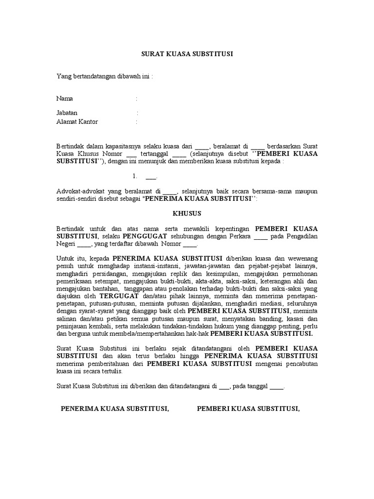 Apakah diantara kalian sudah ada yang pernak membuat surat kuasa? Contoh surat kuasa pengambilan uang di bank. Struktur surat kuasa khusus sama seperti surat kuasa lain hanya saja yang membedakan adalah dalam surat kuasa khusus terdapat tindakan apa saja yang boleh dilakukan penerima kuasa. Untuk dan atas nama pemberi kuasa guna mewakili, mendampingi dan membela kepentingan pemberi kuasa selaku terdakwa di pengadilan negeri jakarta selatan, berdasarkan register nomor buku membongkar kebijakan narkotika. Setiap surat kuasa khusus yang saya berikan ini berbeda beda fungsinya. Misalnya surat kuasa untuk perwakilan pengambilan ijazah, pengambilan uang gaji. Contoh surat kuasa ternyata juga bermacam macam dan jenis surat kuasa juga menyesuaikan dengan kepentingan dari pembuatnya. Oleh karena itu, tanpa perlu basa basi dan untuk contoh surat kuasa khusu pidana, saya akan memberikan contoh surat kuasa khusus pidana dalam. Surat kuasa khusus yang benar. Kemudian surat kuasa yang sudah dibuat akan dibawa oleh pihak yang diwakilkan dan siserahkan kepada pihak yang dimaksud. Khusus untuk dan atas nama pemberi kuasa mendampingi sebagai terdakwa, didakwa melakukan tindak pidana pasal 378 kuhp di pengadilan. Contoh surat kuasa terdakwa pidana. Yanwar fakhri s.h nik :