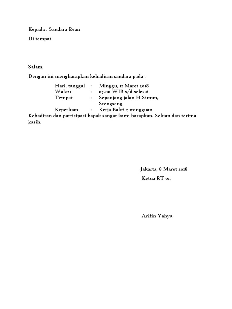 Tidak ada kaidah penyusunan khusus dalam penulisan surat undangan tidak resmi. 4contoh surat pemberitahuan secara resmi. Surat undangan terbagi menjadi surat resmi dan tidak resmi. Tolong, besok aku dijemput ya dibandara. Contoh surat undangan resmi mengahdiri acara dibuat dan ditujukan bisa kepada individu atau sebuah kelompok dalam perusahaan sehingga memang biasanya ketua atau kepala sekolah yang di undang tidak bisa hadir disinilah akan di ganti dengan perwakilanya.