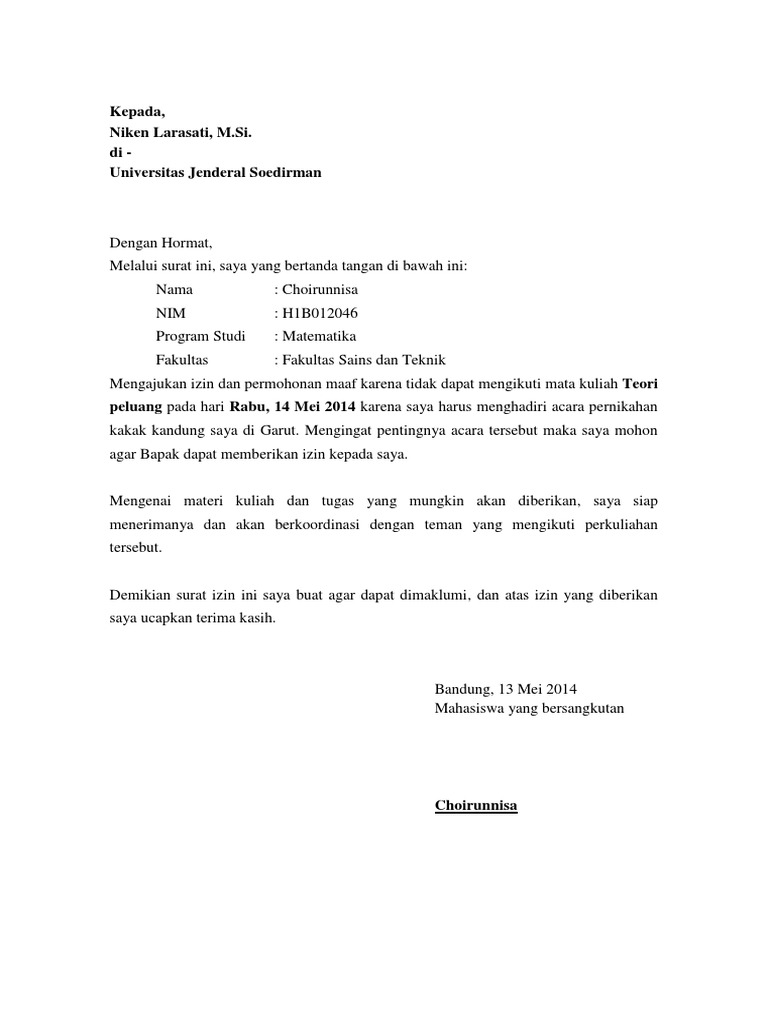 Contoh Surat Izin Kuliah Karena Kerja Praktek Mata Kuliah Mahasiswa from 4.bp.blogspot.com Contoh surat izin yang pertama adalah surat izin untuk tidak masuk sekolah. Jika memungkinkan, sebutkan juga berapa hari kita meminta izin untuk tidak masuk. Surat izin kuliah karena pulang kampung. Baik itu surat izin kuliah, surat izin kerja, surat izin tidak masuk sekolah dll. Bagi mahasiswa yang sedang magang, praktik, lomba atau yang sedang mengurus event kampus, surat ini bisa anda gunakan sebagai informasi kepada dosen bahwa anda tidak bisa mengikuti kegiatan perkuliahan pada tanggal tertentu. 21b kemiling dengan ini bermaksud untuk memohon izin tidak dapat mengikuti kegiatan perkuliahan pada mata kuliah akuntansi lanjut yang ibu ampu pada. Kepala smkn 8 yogyakarta di yogtakarta. Untuk pengunaan surat izin sendiri mempunyai format dasar sebagai acuan sehingga memudahkan.